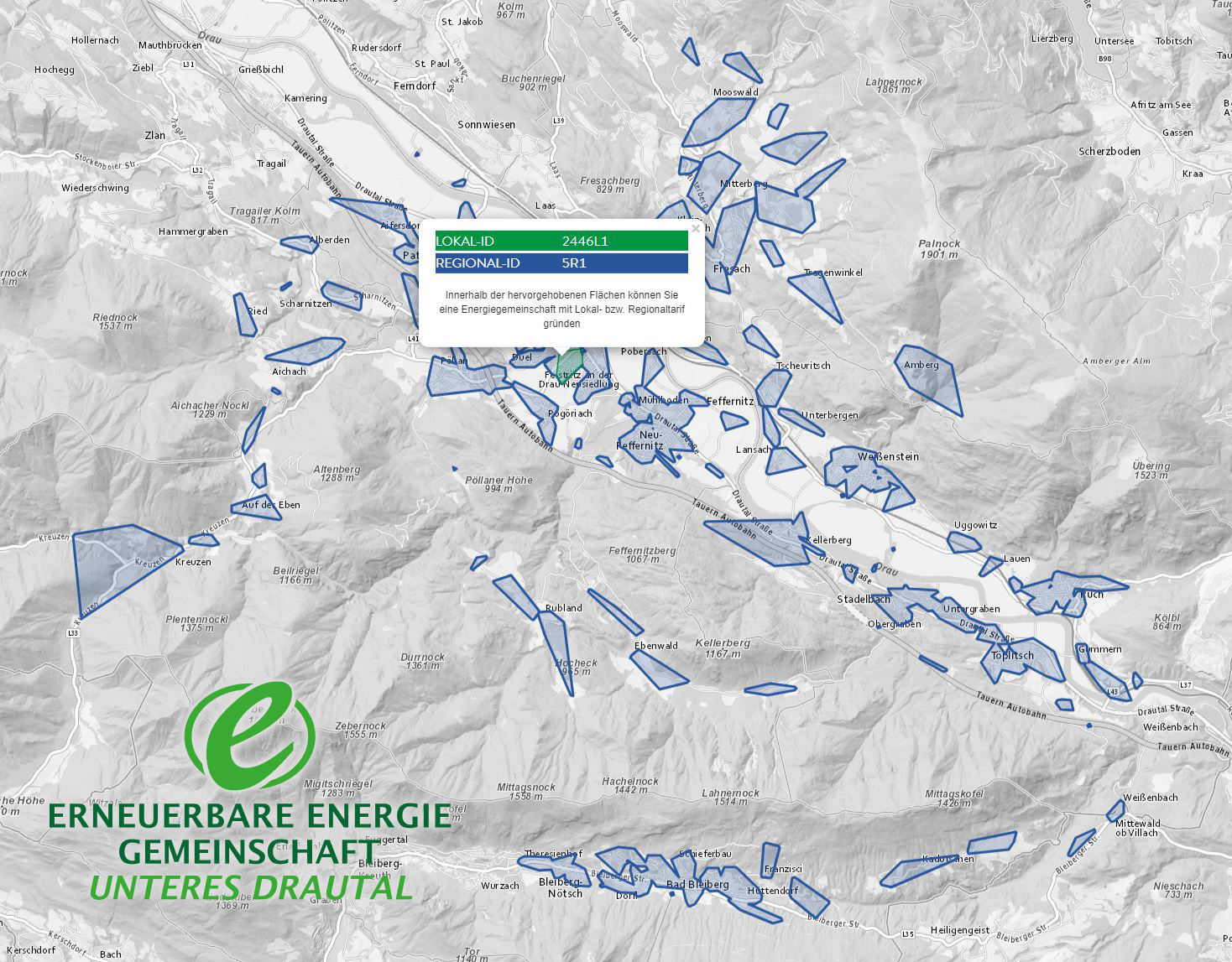 Der Regionalbereich der Erneuerbare-Energie-Gemeinschaft Unteres Drautal mit der ID 5R1 liegt im Großraum der Orte Paternion, Feistritz an der Drau bis Bad Bleiberg. Die genauen Bereiche können auf einer interaktiven Karte von Kärnten Netz abgerufen werden.